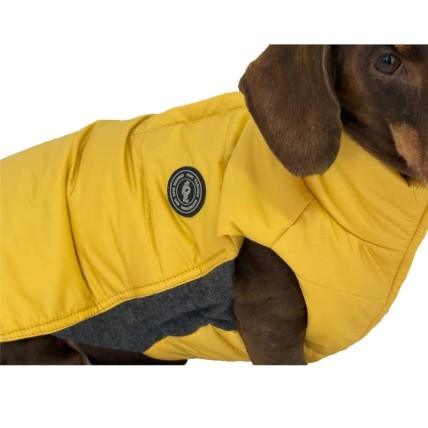 Mit der Artic Gold Daunenjacke ist dein Hund stilvoll und gut geschützt unterwegs – auch bei Kälte und Nässe.